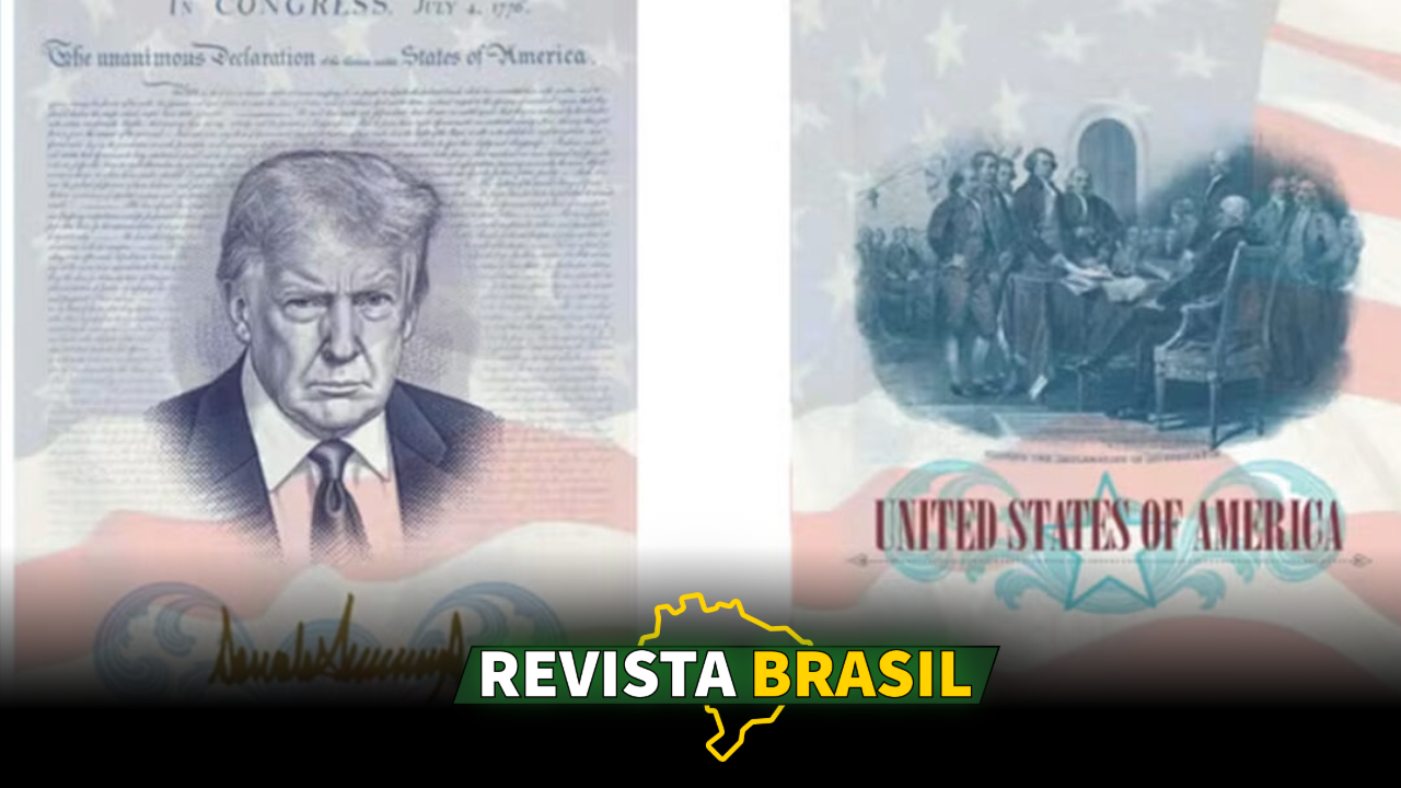 Ou seja, a edição terá valor oficial como qualquer outro passaporte. A diferença estará na arte interna, na assinatura dourada de Trump e nos elementos visuais ligados à independência norte-americana.